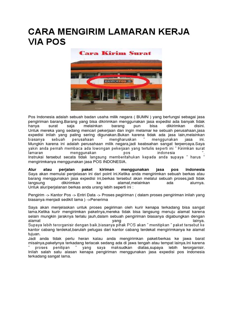 Cara Mengirim Surat Lamaran Kerja Lewat Pos / Cara Mengirim Surat Atau Dokumen Yang Benar Di Kantorpos Dan Agenpos Www Infokantorpos Com / Begini cara kirim barang di kantor pos.. Di bawah ini adalah 16 contoh surat lamaran kerja via email dan cara mengirim lamaran kerja lewat email untuk berbagai keperluan yang bisa dicontoh. Berbeda dengan dahulu, dulu orang yang tengah mencari pekerjaan akan mengirim surat lamaran kerja dengan memanfaatkan pos atau mendatangi perusahaan. Maksud dan tujuan merupakan keterangan tentang alasan pengirim atau pelamar pekerjaan menulis surat. Home » cara kirim surat » cara mengirim surat atau dokumen yang benar di kantorpos dan agenpos. Terlebih bagi orang dengan pengetahuan di bidang it yang minim.