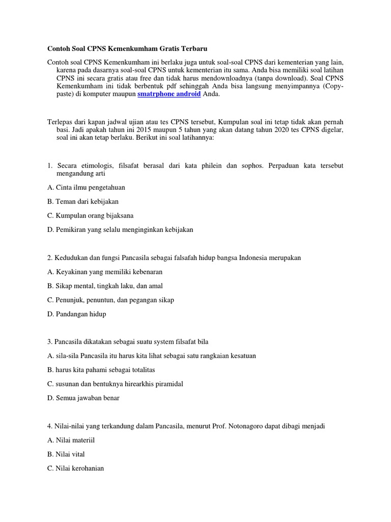 Contoh soal cpns tes wawasan kebangsaan : Contoh soal cpns sudah banyak beredar di internet. Simak dan pahami tata cara penyelesaiannya. Literasi bidang pendidikan dan kebudayaan. Formasi hukum dan hak asasi manusia 2.