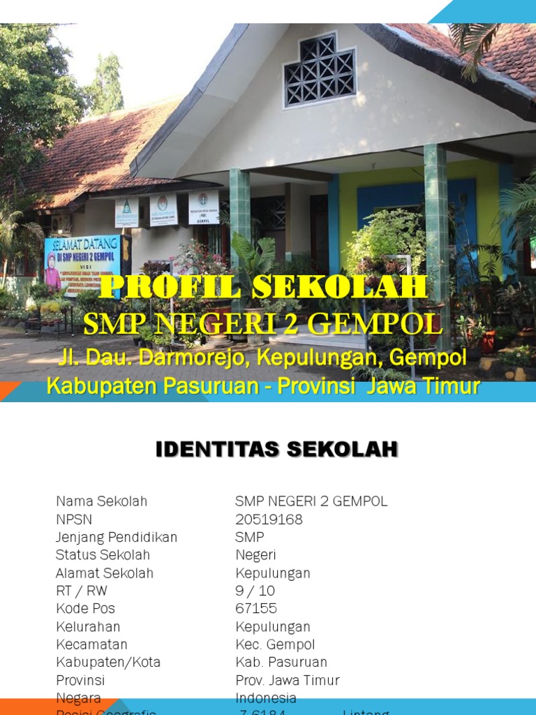Profil Sekolah Smp - Profil Sekolah SD dan SMP 2020 | Dinas Pendidikan dan ... : Kledokan selomartani, kalasan, sleman, yogyakarta telpon :. Identitas sekolah nama satuan smp islam nurul huda npsn 69955385 bentuk pendidikan smp status sekolah swasta status kepemilikan yayasan sk izin operasional. Profil sekolah smp negeri 3 mojolaban. Smk negeri 1 tamanan bondowoso jl. Download profil sekolah secara online. Milik sendiri • luas bangunan.