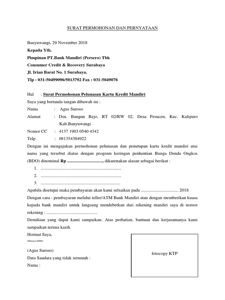 Petunjuk untuk mencetak surat konfirmasi aplikasi, dan kelengkapan dokumen persyaratan. Tutup kartu kredit dengan biaya administrasi terbesar dan kartu kredit yang paling baru dibuat terlebih dulu. Kondisi yang tidak menentu terkadang membuat kita tidak sanggup menghadiri urusan penting. Jumlah pinjaman mulai dari rp2 juta hingga rp20 juta. Pemberi dan penerima kuasa haruslah sudah dewasa dan sehat secara jasmani maupun rohani. Buat apa beli pulsa pake cara yang kena biaya bayar tagihan kartu kredit? Pengguna harus melunasi semua tagihannya. Nah, pembuatan surat kuasa inilah yang rumit: Maupun dengan cara diplat/ dicicil. Selanjutnya siapkan dokumen persyaratan dengan disertai surat konfirmasi yang telah dicetak dan ditandatangani. Oleh roy passenger 20 apr, 2016. Bahkan, kabarnya tak sedikit yang telah melakukan pengajuan lebih dari sekali, tapi tetap berakhir penolakan. Mau buat surat, buka dulu contohsuratindonesia.com 🙂.